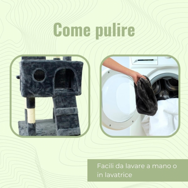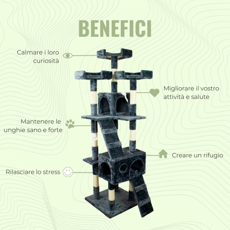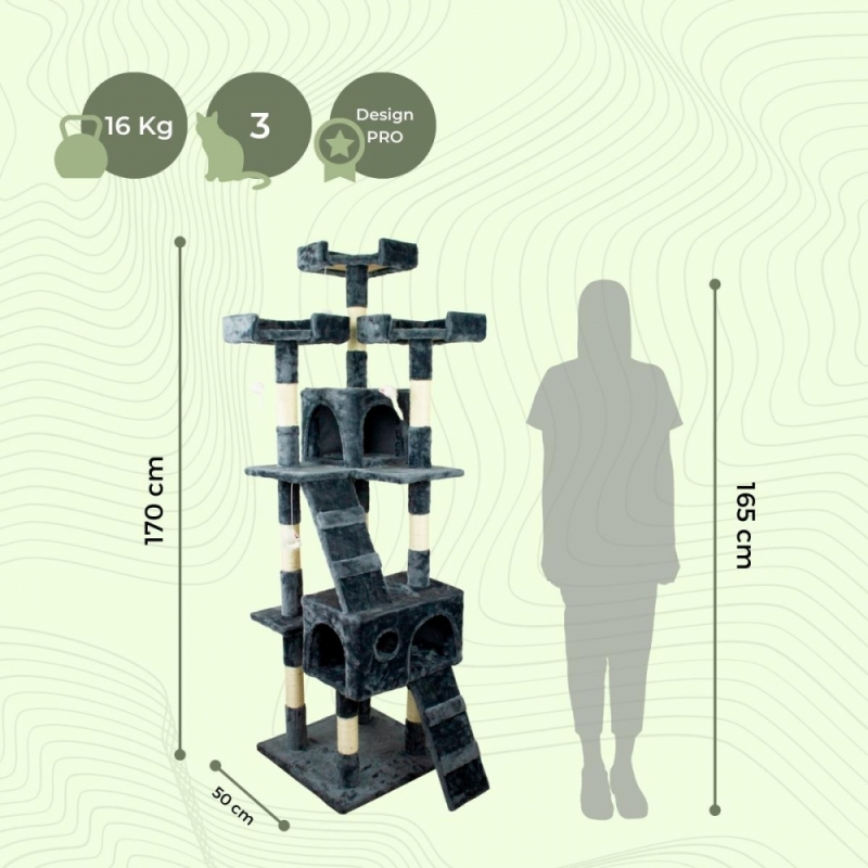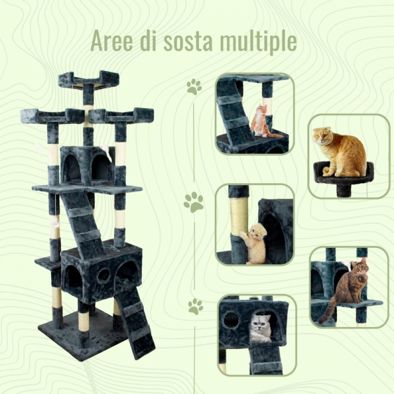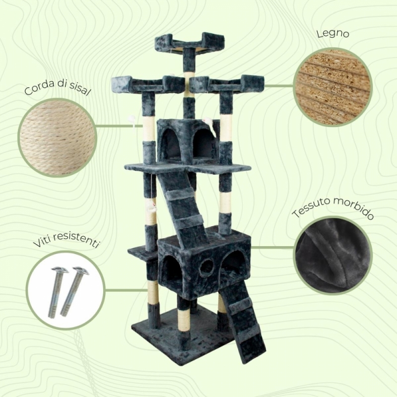 - Tre colonne rialzate: le colonne perfezionano il design e aggiungono alla struttura una corda di sisal con cui il tuo gatto può giocare e rilassarsi.
