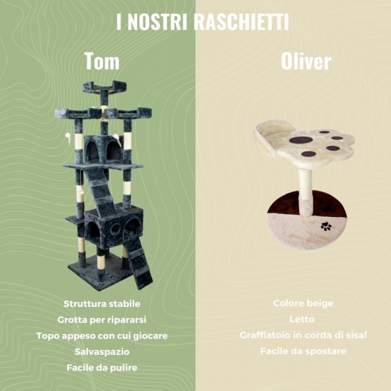 - Cuccia tiragraffi per gatti con varie possibilità di riposo.