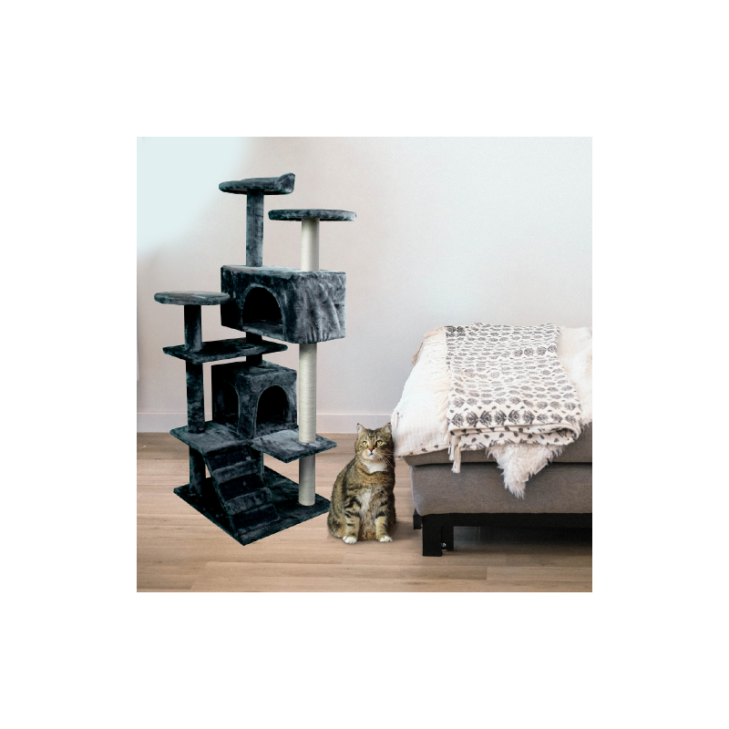 Tiragraffi per gatti | Grande | Rifugio | 4 altezze | 50x50x170cm | 16 kg |Grigio | Tom | Supporta 10 kg |Mobiclinic