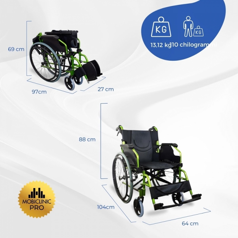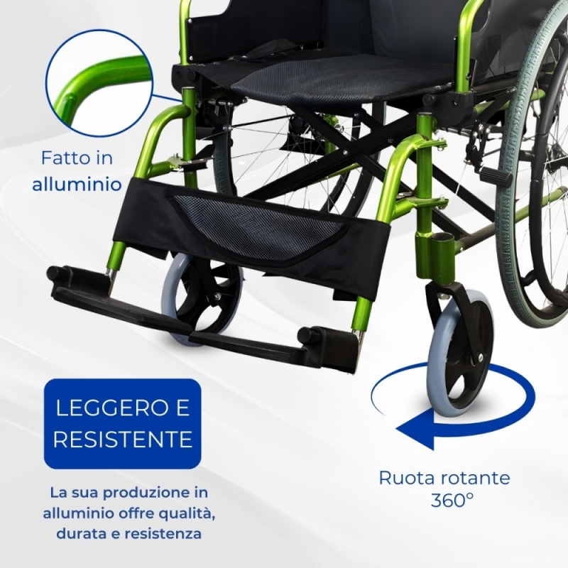 Sedia a rotelle | Alluminio | Verde| Schienale diviso| Bracciolo pieghevole | Bolonia| Pieghevole |Mobiclinic