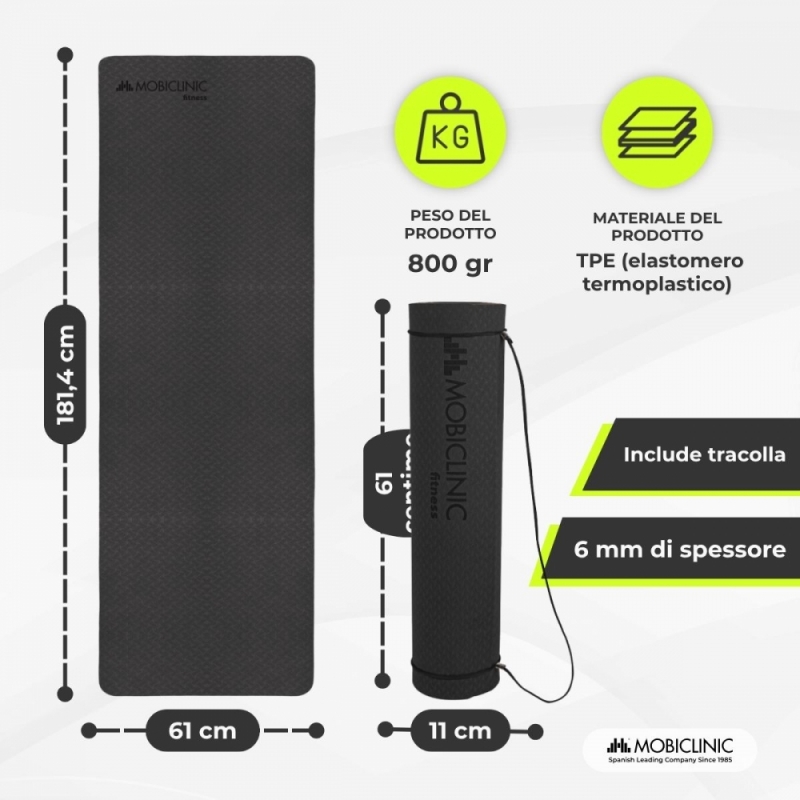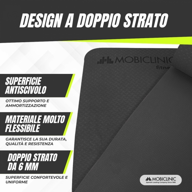 Il tappetino fitnessEY-01 ha uno spessore di 6 mm che rende la sua superficie confortevole e uniforme, garantendo il miglior livello di ammortizzazione e protezione per le articolazioni.