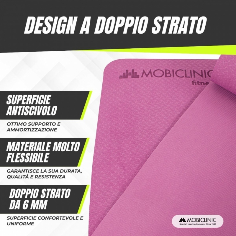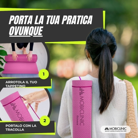 Questo tappetino è appositamente progettato per gli appassionati di yoga e pilates per praticare questi esercizi indipendentemente dal loro livello.