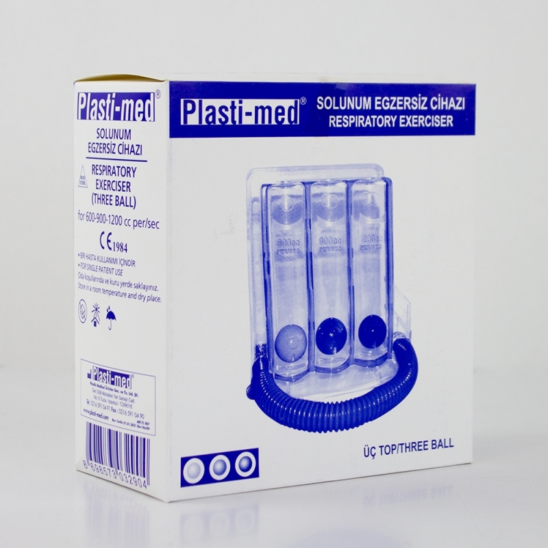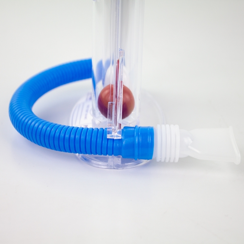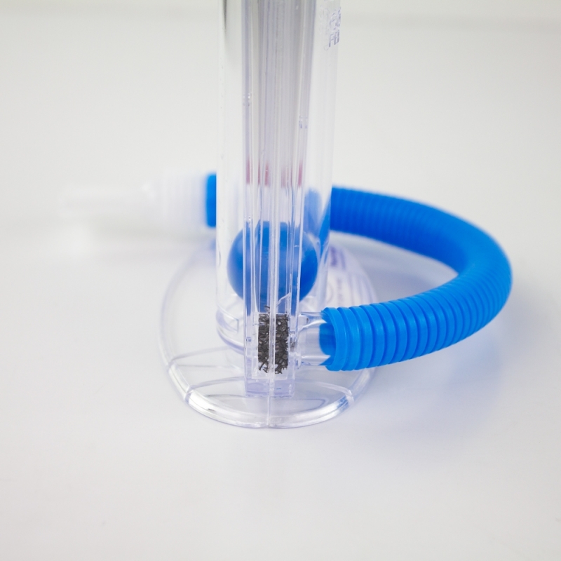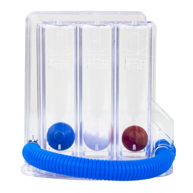 L'esercizio di respirazione è appositamente progettato per le persone con malattie respiratorie o polmonari. Gli esercizi di respirazione possono essere regolati da voi stessi a seconda dell'intensità dell'esercizio richiesto. Intensità delicata: 1° palla in alto; intensità moderata: 1° e 2° palla in alto; intensità massima: 1°, 2° e 3° palla in alto. Le 3 camere, le palline e il tubo con boccaglio sono tutti fatti di materiale atossico. Il boccaglio è privo di lattice. Il suo funzionamento si basa su tecniche di kinesiologia respiratoria o inspirometria incentivante per ottenere che i pazienti con bronchite cronica, enfisema polmonare, COPD nel periodo pre e post-operatorio rafforzino, ripristinino e mantengano la loro capacità polmonare.