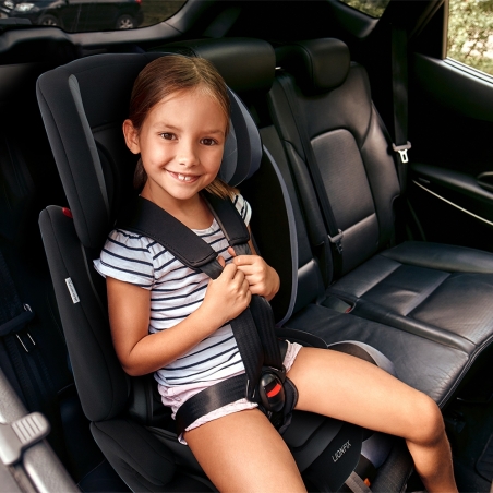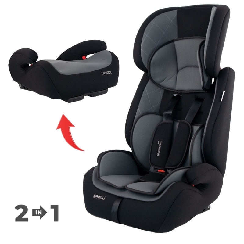 Inoltre, questo seggiolino auto è un 2 in 1, poiché lo schienale può essere rimosso e la seduta può diventare un rialzo. Con questo booster, i bambini da 22 kg a 36 kg possono ora usarlo con la cintura di sicurezza per adulti. Inoltre, il suo sedile è reclinabile da 100º a 105º per un maggiore comfort. Questa reclinazione avviene tramite il pezzo regolabile che si trova sotto la sedia. Il sedile Lionfix deve essere posizionato nella direzione di marcia.