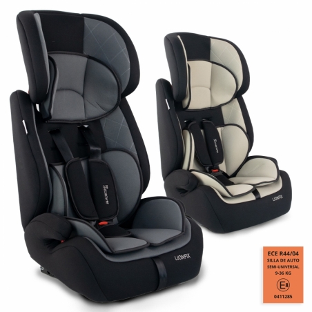 Il seggiolino auto Lionfix si caratterizza per la sua comodità e sicurezza, poiché il suo design è costituito da un'imbottitura per il riduttore (testa e corpo) in poliestere, studiata per essere una seduta ad alto comfort ed ergonomia durante i lunghi viaggi. Allo stesso modo, il suo poggiatesta è regolabile, ottenendo un'altezza massima di 75 cm, consentendo ai bambini più grandi di utilizzare la sedia ed evitando di doverla cambiare ogni anno.