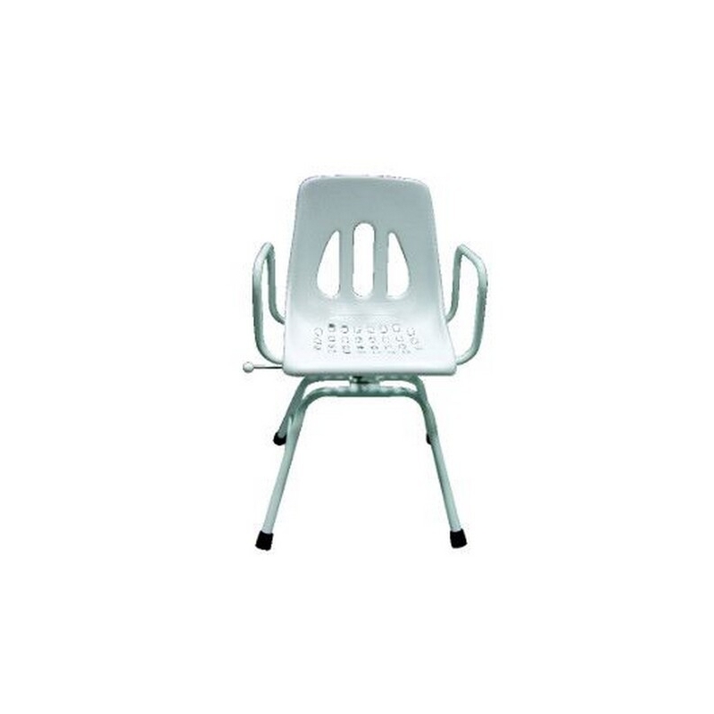 Questa pratica sedia da doccia può essere ruotata nel piatto doccia. Risparmiando spazio, è più facile sedersi di fronte alla porta e poi girarsi. Struttura in acciaio epossidico e seduta di grande comfort.