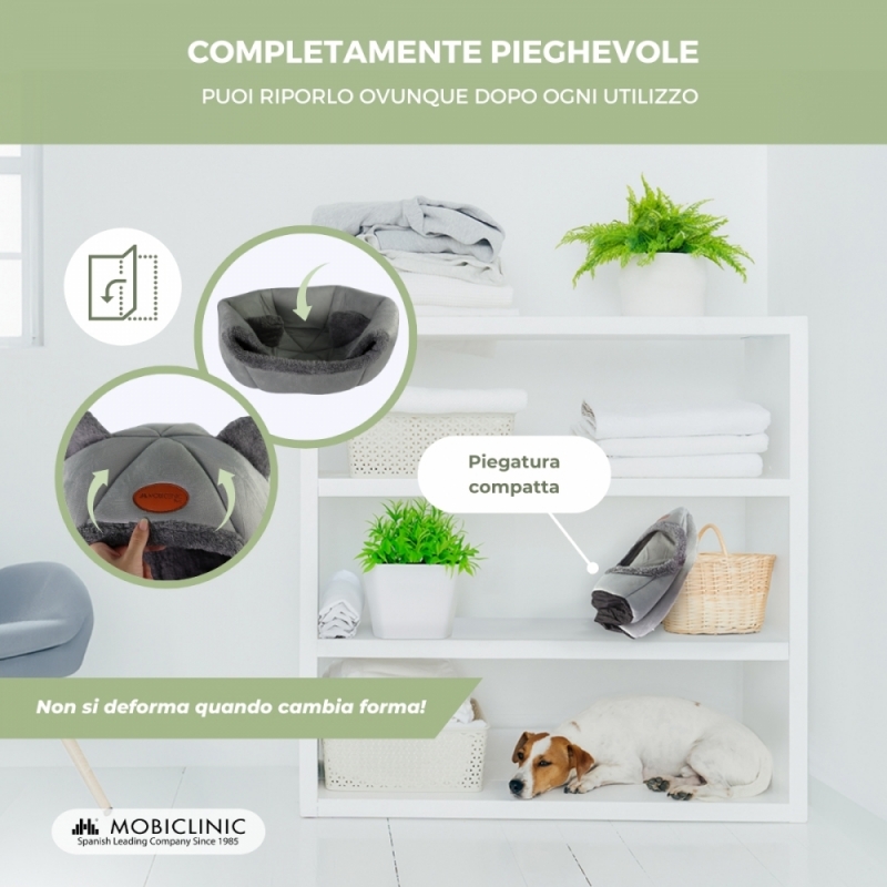 Il lettino per gatti si piega facilmente , rendendolo l'opzione perfetta da portare ovunque. Il suo design compatto gli permette di occupare poco spazio, rendendolo facile da riporre in qualsiasi angolo della casa quando non viene utilizzato.