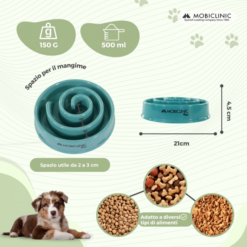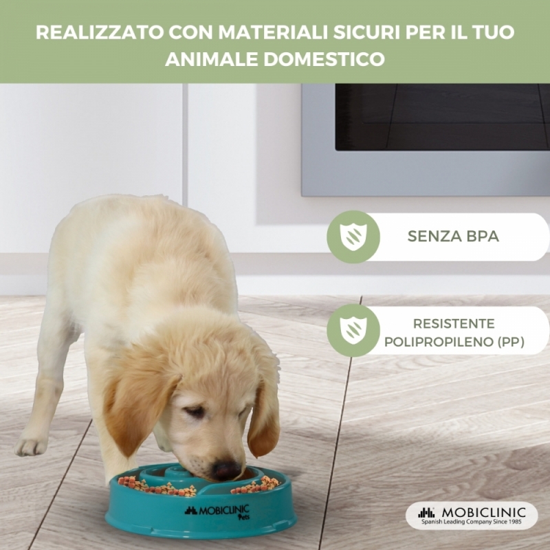COMPATIBILE CON DIVERSI TIPI DI ALIMENTI : È adatto a vari tipi di cibo , sia secco, umido, crudo, anche acqua, latte... La mangiatoia è la soluzione ideale per cani golosi che mangiano con ansia ed eccessivamente velocemente .