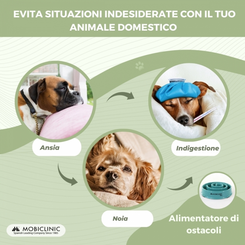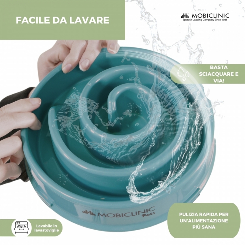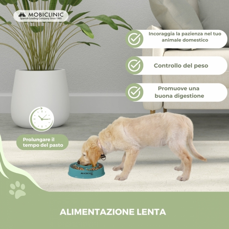 L'alimentatore lento MobiEat va oltre il semplice rallentamento dell'alimentazione del tuo animale domestico. Questa ciotola innovativa non solo previene il vomito e riduce il gonfiore dello stomaco , ma favorisce anche una digestione più sana .