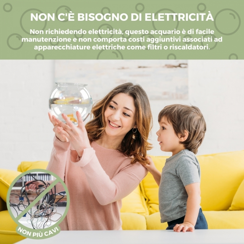 SENZA ELETTRICITÀ: non richiede elettricità, questo acquario trasparente è di facile manutenzione senza costi aggiuntivi. La sua leggerezza lo rende facile da trasportare, rendendolo ideale per chi ha bisogno di spostarlo da un luogo all'altro. Dopo la decorazione diventa un pezzo esteticamente gradevole, aggiungendo un tocco decorativo all'ambiente.