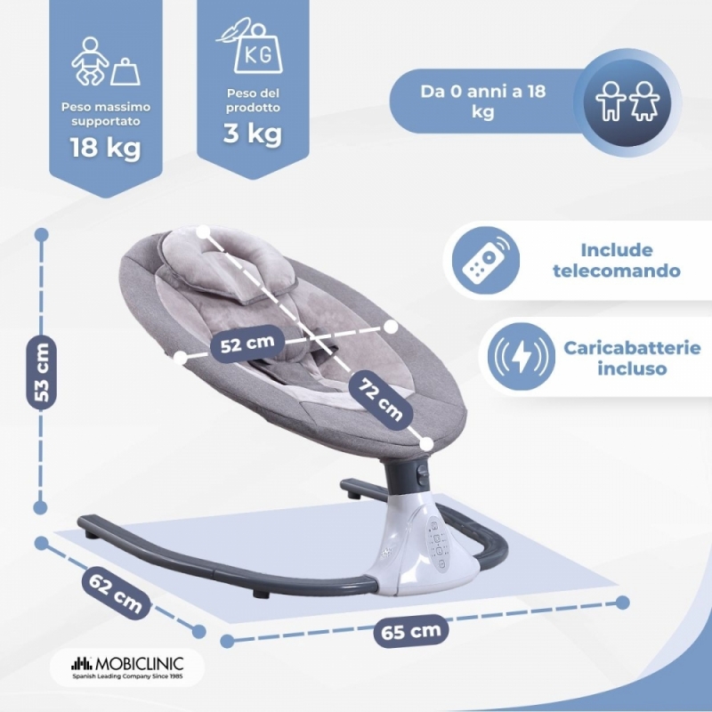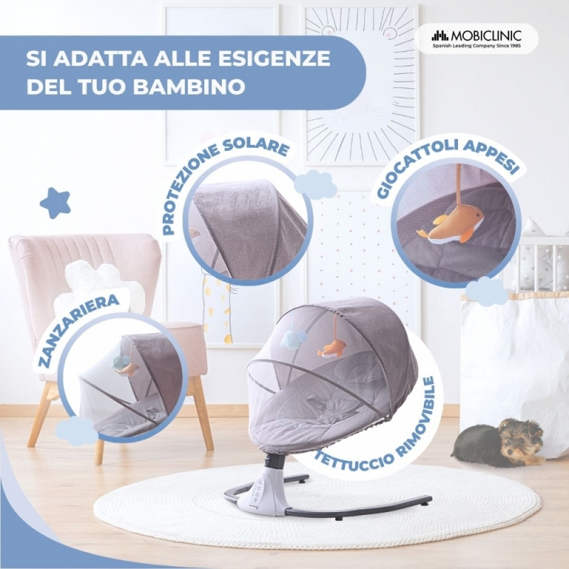 FUNZIONE OSCILLAZIONE REGOLABILE: Offre velocità multiple per adattare il movimento alle preferenze del bambino. Ideale per calmare e favorire il sonno.