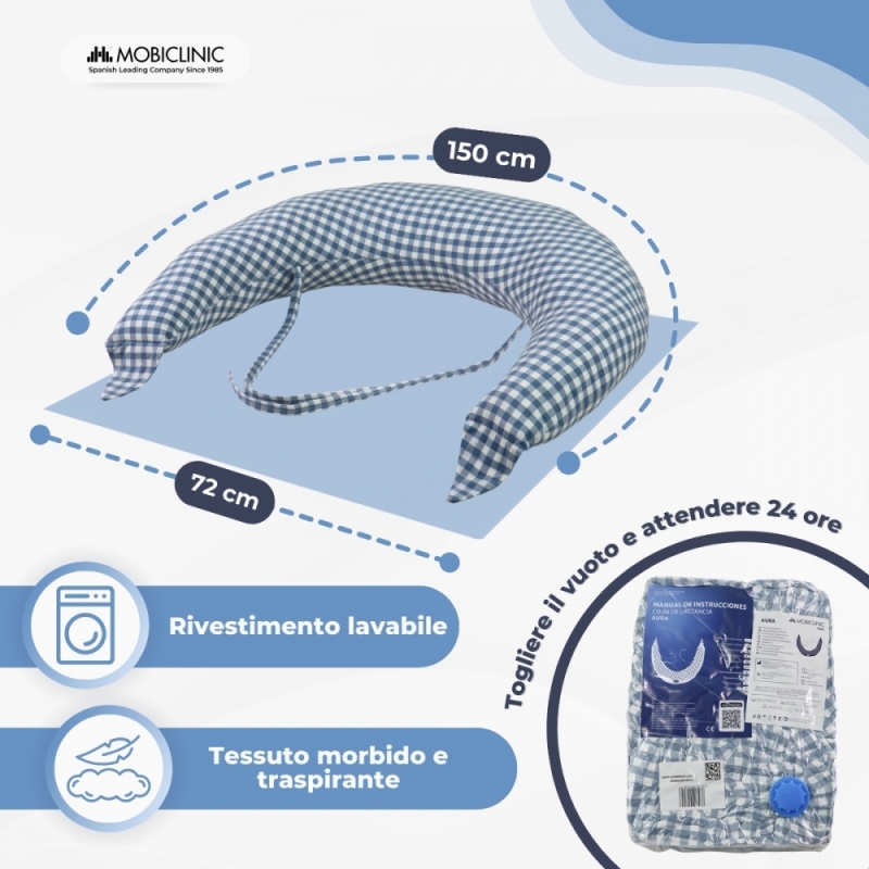 FACILE DA MANUTENERE: Questo cuscino per l'allattamento è realizzato con materiali di alta qualità con una moderna ed elegante stampa a quadretti. È anche morbido al tatto, ideale sia per la mamma che per il bambino. Uno dei suoi maggiori vantaggi è la facilità di manutenzione: è lavabile in lavatrice, permettendoti di rimuovere facilmente eventuali macchie o residui grazie alla sua fodera sfoderabile. Può anche essere stirato e lavato a secco . Il cuscino Aura unisce praticità, funzionalità e comfort, rendendolo ideale per ogni fase della maternità.