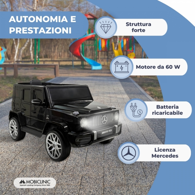 LICENZA MERCEDES: questa auto a batteria per bambini ha la licenza ufficiale Mercedes, garantendo un aspetto realistico del veicolo. È dotato di batteria da 12V4,5A e velocità massima di 5km/h, ideale per bambini dai 36 ai 72 mesi. Con il suo elegante design nero e i dettagli realistici, affascinerà ogni piccolo avventuriero!