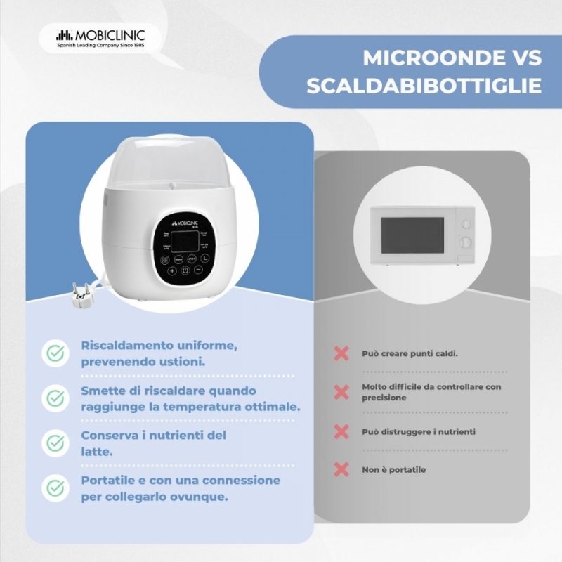 La funzione di scongelamento è stata testata per preservare i nutrienti essenziali del latte materno, mentre la funzione di sterilizzazione garantisce l'eliminazione del 99,99% di germi e batteri, assicurando un'igiene ottimale. Il dispositivo è inoltre in grado di mantenere la temperatura desiderata per 48 ore, consentendo di mantenere il latte o gli alimenti sempre caldi, ideale per lunghe notti o viaggi.