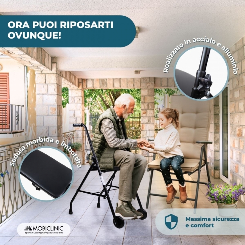 COMODO: Grazie alle maniglie anatomiche e al sedile imbottito in PVC, non è solo un comodo deambulatore ortopedico per muoversi ma anche per riposare.
