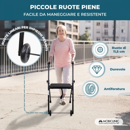 Inoltre, essendo un deambulatore pieghevole, sarà facile da piegare grazie al suo asse centrale. Il suo design nero conferisce a questo deambulatore per anziani l'eleganza che hanno sempre desiderato.