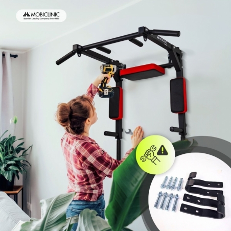 COMFORT E SICUREZZA: La barra per trazioni include un cuscino per la schiena e poggiagomiti imbottiti, resistenti agli urti e progettati per fornire maggiore stabilità durante gli esercizi. È inoltre dotata di un sistema di ancoraggio a 4 ganci che garantisce una presa sicura alla parete e previene movimenti indesiderati.