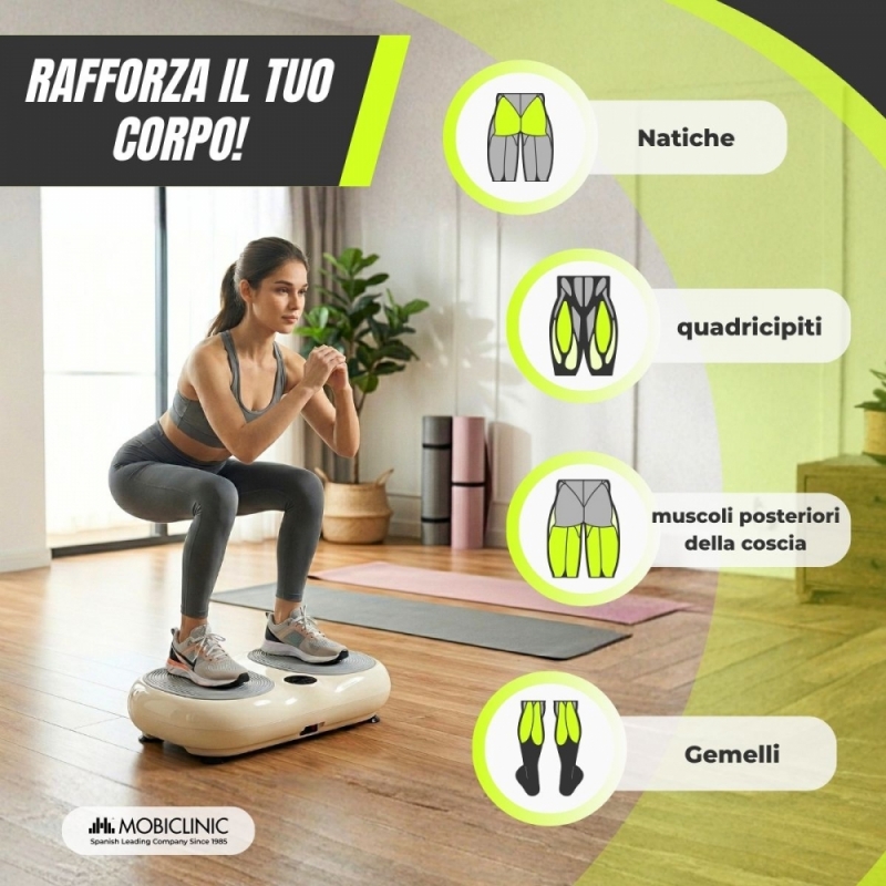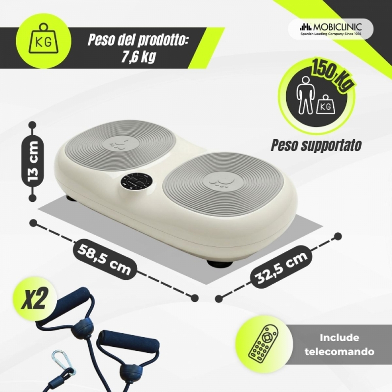 Piattaforma vibrante | 99 livelli di velocità | 9 programmi | Fasce elastiche | Schermo e telecomando | Karol | Mobiclinic