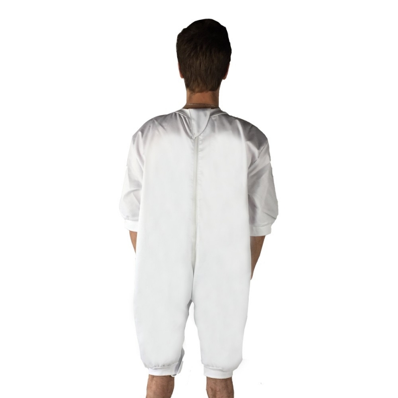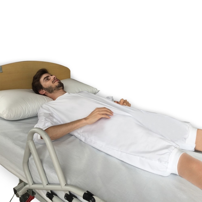 Il pigiama intero corto (manica e gamba corta) è indicato per pazienti che soffrono di incontinenza e/o demenza. È dotato di una cerniera nella parte interna delle gambe (da caviglia a caviglia), cucita in modo tale che il paziente non possa aprirla e toccare il pannolone. Tuttavia, gli assistenti sanitari possono cambiare facilmente il pannolone senza dover togliere il pigiamone intero. Il pigiama sanitario è perfetto anche per proteggere la pelle dei pazienti dal rischio di autolesionarsi.