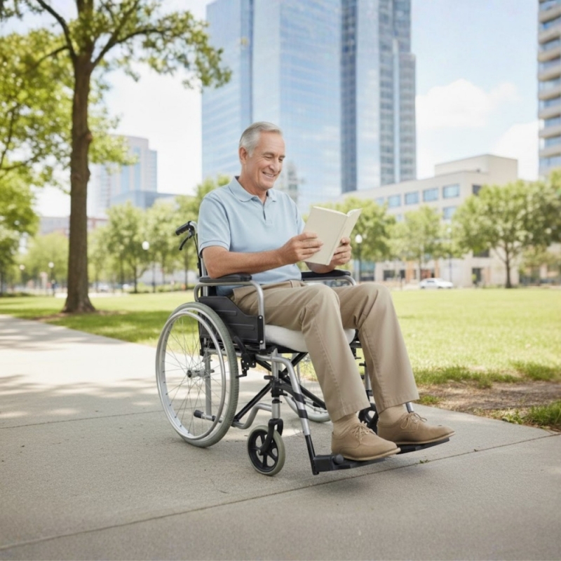 DIFFERENZA COMFORT: Per garantire il comfort, il Breezy Style, ex Breezy 300, è dotato di poggiapiedi rimovibili e girevoli a 70° e di braccioli pieghevoli posteriori rimovibili.