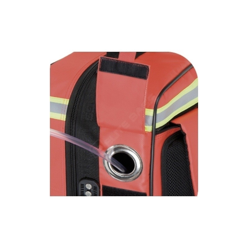 Questa borsa per le emergenze è dotata di apertura facile e di una rondella per l’estrazione del tubo d’ossigeno. Potrai usare la tasca frontale trasparente, che oltre ad avere una grande capienza, permette di avere sotto controllo il contenuto. Contiene fasce per il supporto della bombola d’ossigeno, quattro scomparti estraibili con frontale trasparente e ampollario termico con capienza per 66 fiale.