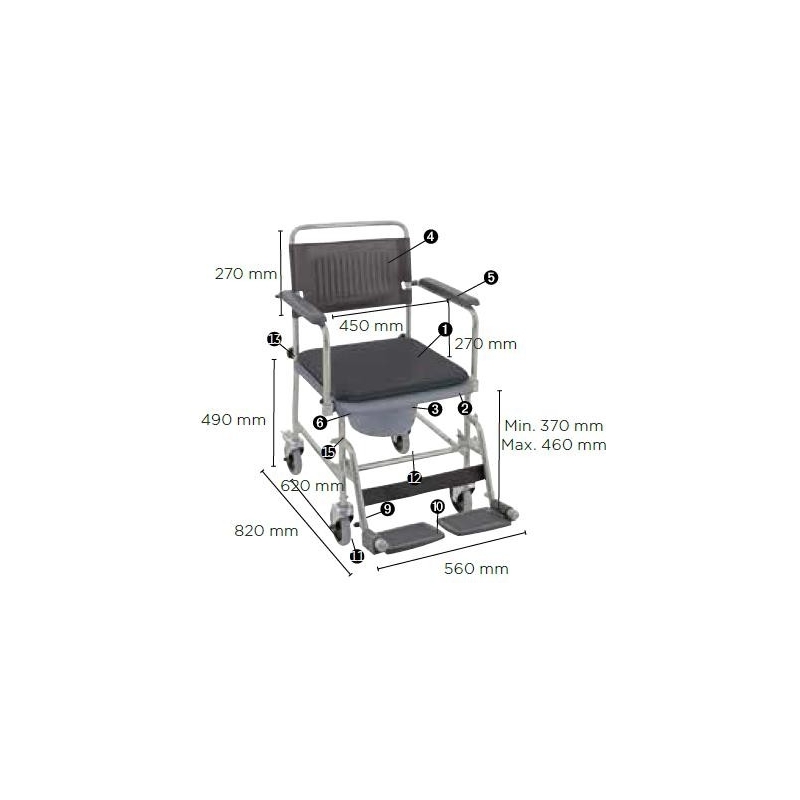 Parenti ed infermieri noteranno i vantaggi di questa sedia, grazie alle rotelle per una facile mobilità e al secchio estraibile che facilita la cura e la pulizia della sedia.