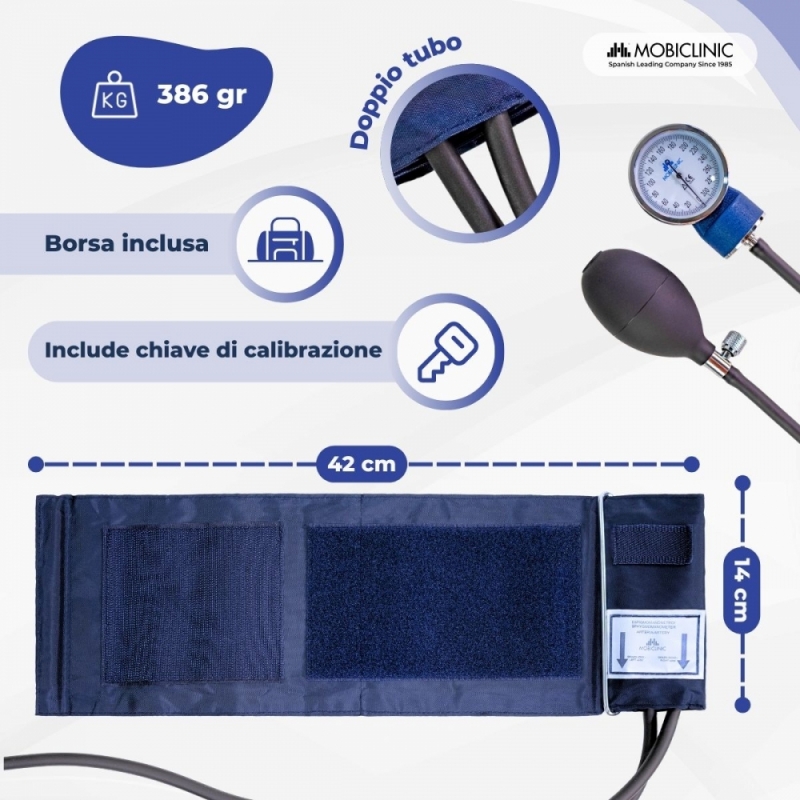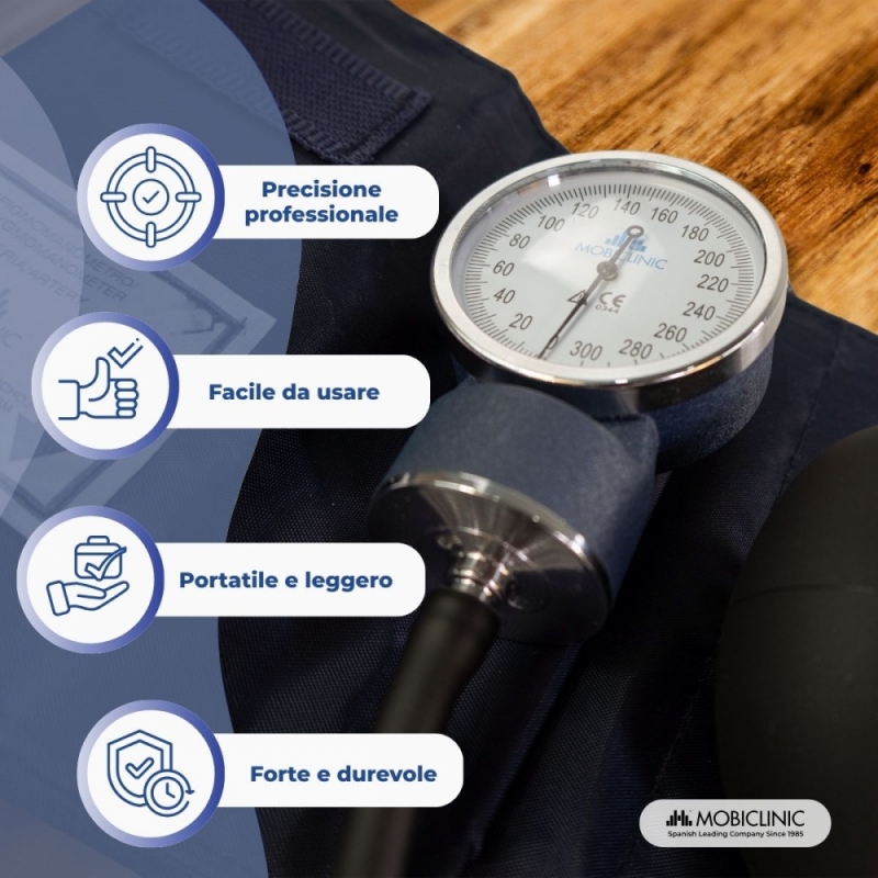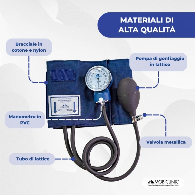 Misuratore di pressione aneroide | Pressione arteriosa | Due uscite | Comodo | Adattabile | Blu | Mobiclinic