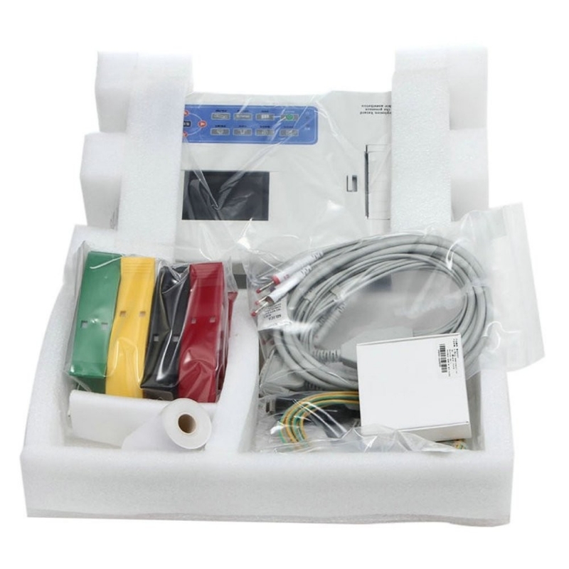 Questo elettrocardiografo portatile ECG300G a 3 canali con analisi simultanea di 12 derivazioni e sistema di stampa termica del tracciato ECG, è ideale per le situazioni di emergenza.