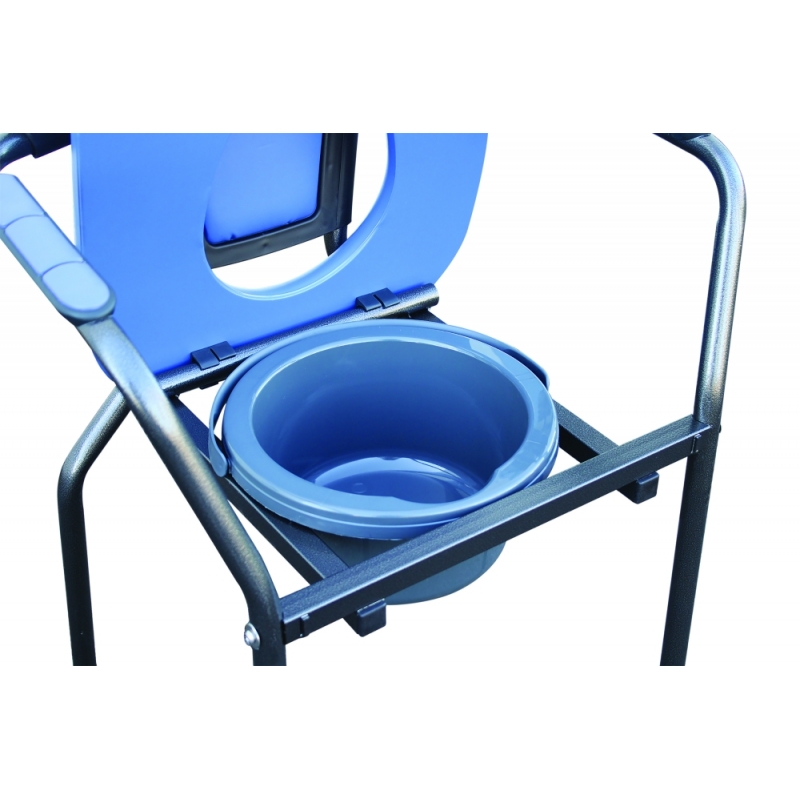 Sedia da camera Agronda con wc e braccioli, colore blu. È una toilette portatile ideale per anziani, malati, anziani o con