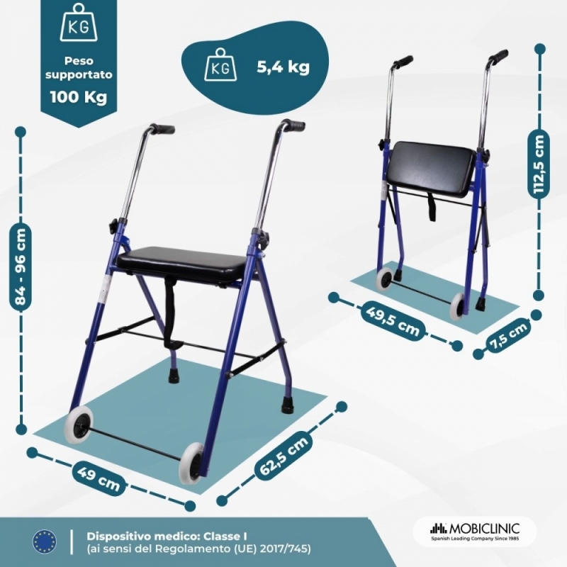 Inoltre, essendo un deambulatore pieghevole, sarà facile da piegare grazie al suo asse centrale. Il suo design blu brillante conferisce a questo deambulatore per anziani l'eleganza che hanno sempre desiderato.