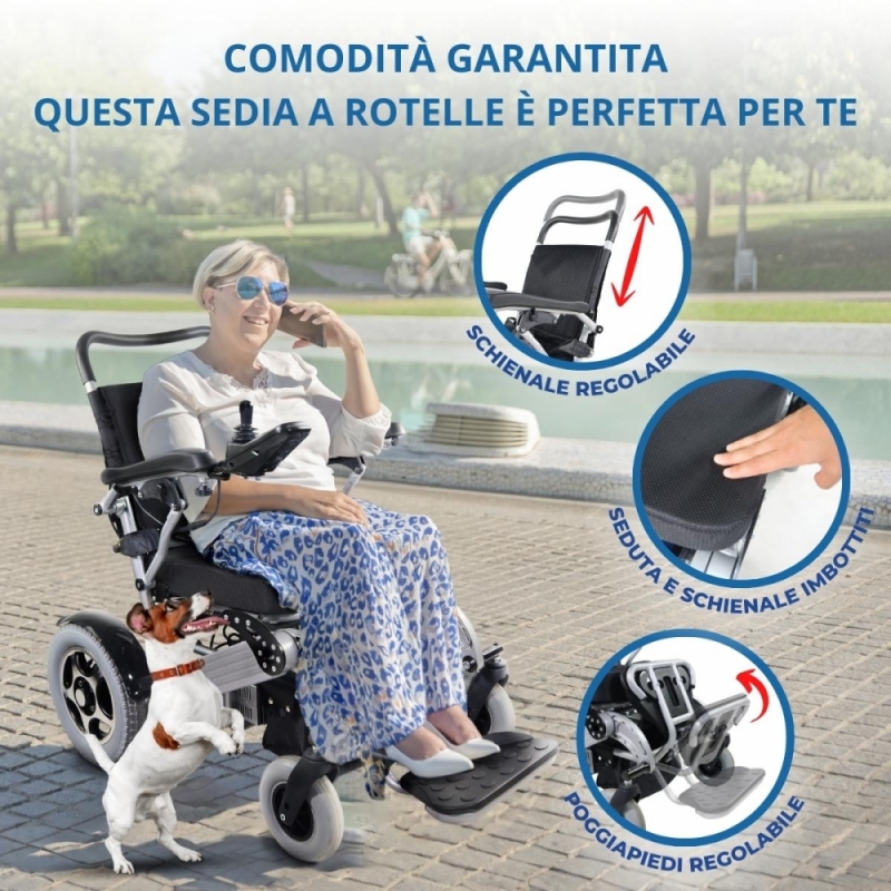 ACCESSIBILE A DIVERSI UTENTI: Questa sedia a rotelle elettrica pesa 24,8 kg senza batterie e, con le batterie, il suo peso totale è di 36 kg. Questo modello può supportare un peso massimo fino a 120 kg.