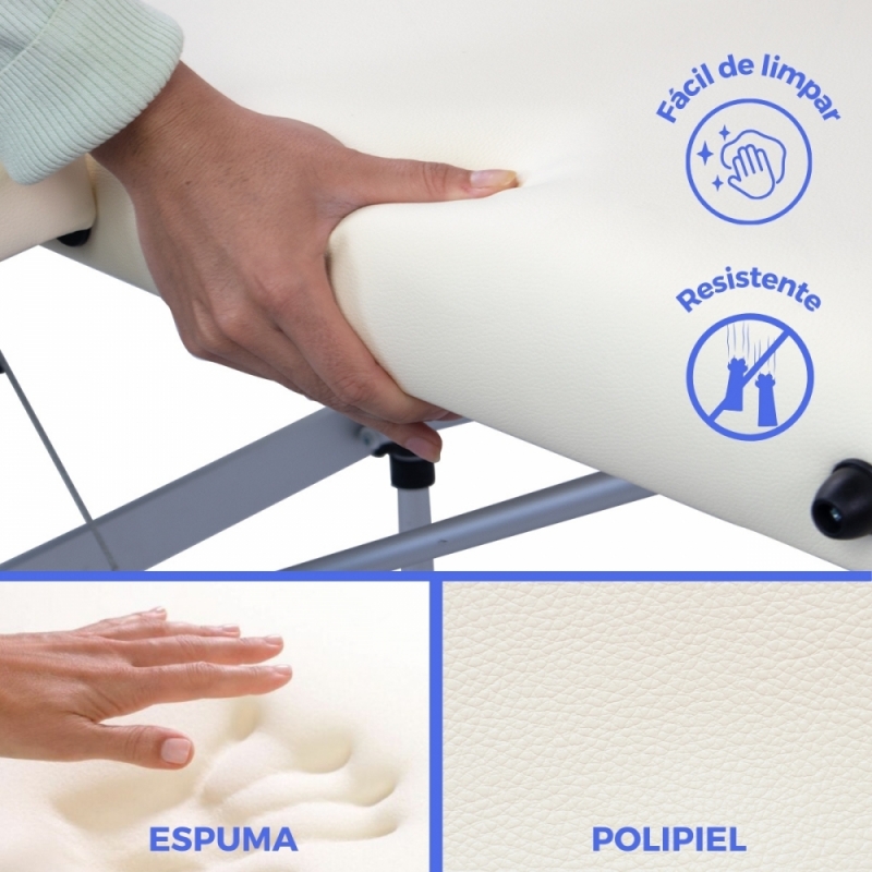 Questo lettino per estetista è regolabile in altezza grazie alle gambe che dispongono di diversi livelli, posizionandolo così all'altezza desiderata.