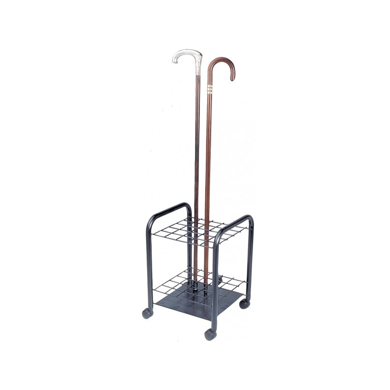 Espositore per 25 bastoni o stampelle Con ruote. Acciaio e vernice epossidica.