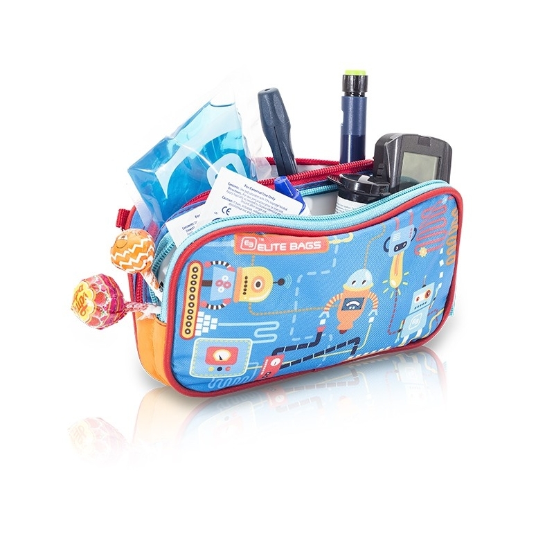 Astuccio isotermico progettato in modo che i più piccoli della casa possano portare tutto il materiale essenziale per il trattamento del diabete.