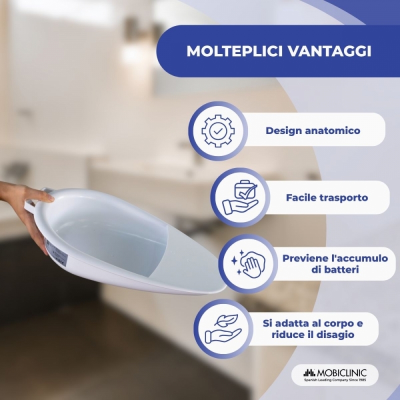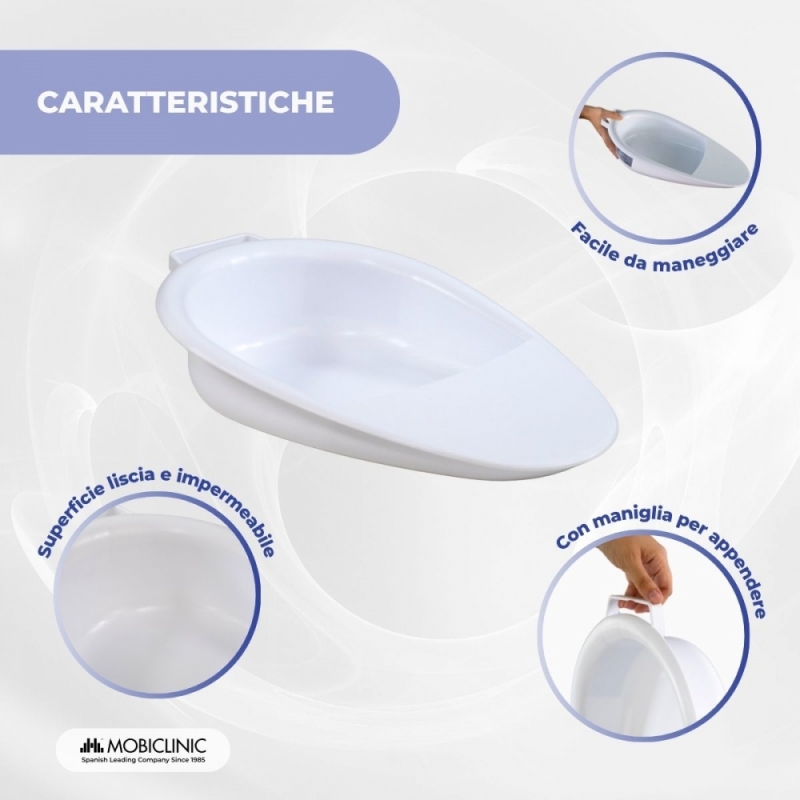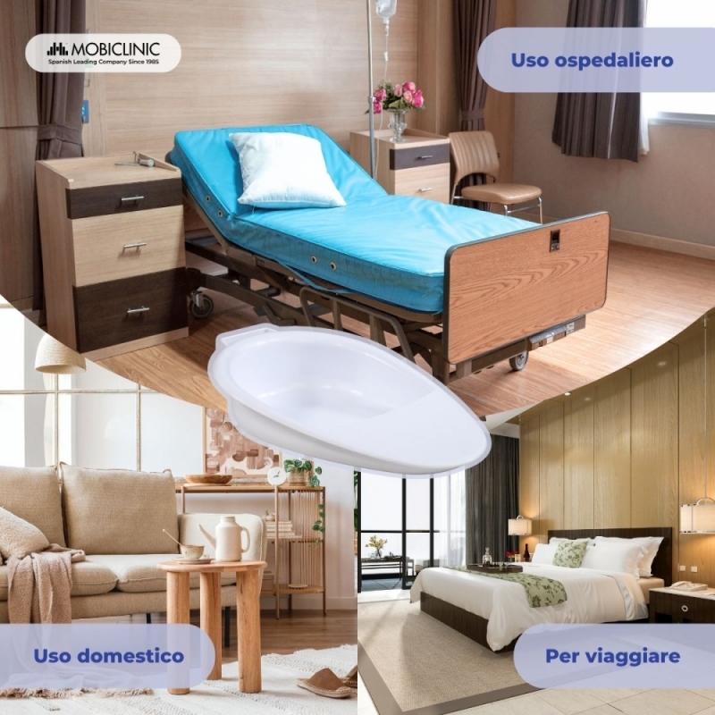 IGIENICO E RIUTILIZZABILE: il suo materiale in polipropilene liscio e impermeabile può essere disinfettato e pulito dopo ogni utilizzo con acqua tiepida e sapone neutro. La sua struttura monoblocco previene l'accumulo di batteri, mantenendo l'igiene e la sicurezza del paziente.
