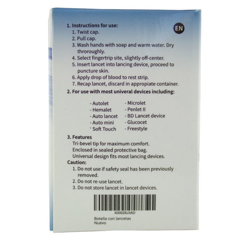 Questo pacchetto include 50 lancette pungidito glicemia, ideale per le persone che hanno bisogno di usarle ripetutamente. Vengono anche usate per determinare se si hanno certe allergie.