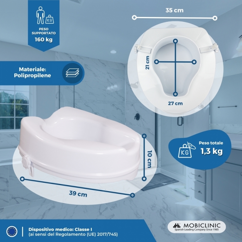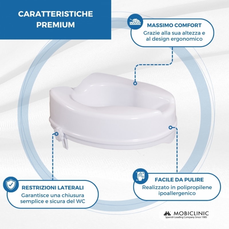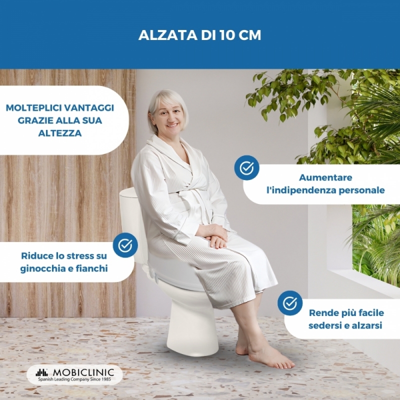 Questo rialzo wc disabili offre grande sicurezza e stabilità, offrendo benefici per gli anziani o per le persone a mobilità ridotta.