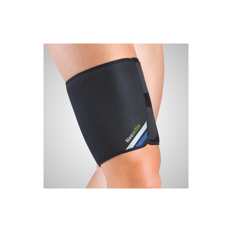 FORMA ANATOMICA: Elasticità uniforme: migliore adattamento, vestibilità e posizionamento. Non limita la mobilità. La sua viscosità/gommosità aumenta la protezione dell'area interessata, allevia il dolore, riduce e controlla l'edema e migliora la sensazione propriocettiva. Adeguamento al contorno della coscia tramite velcro.