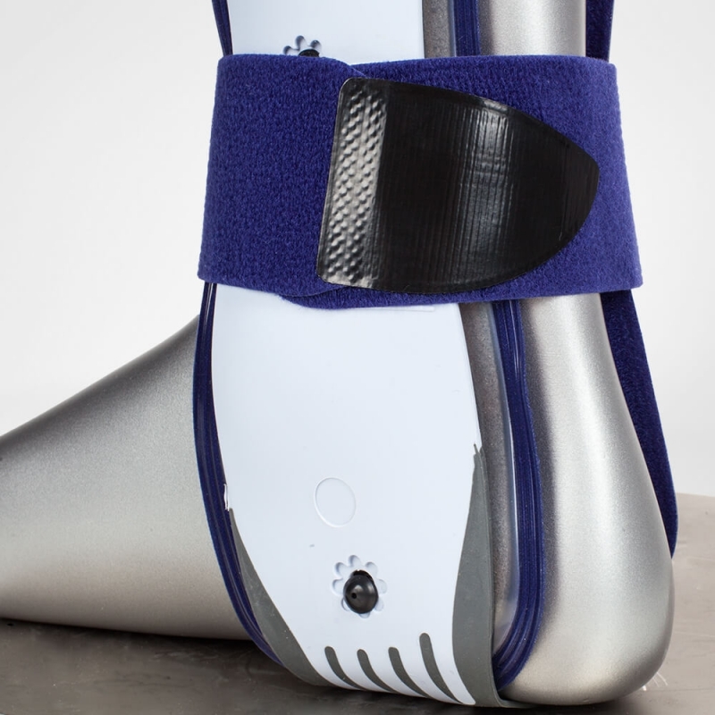 Ortesi stabilizzante che incorpora innovative capsule in plastica. Questo sistema permette un adattamento ottimale alla larghezza del piede e al grado di infiammazione di ogni paziente. Le capsule in plastica hanno una forma anatomica e si adattano piacevolmente all'articolazione della caviglia.