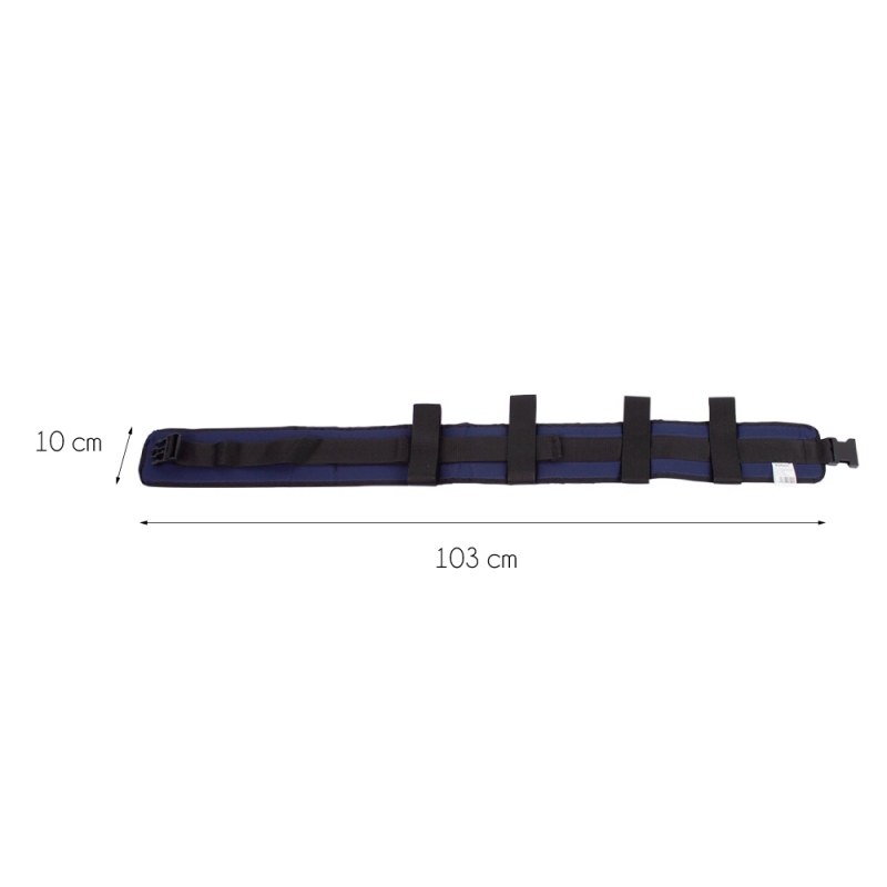 Cintura alza-malati pensata per aiutare e facilitare le persone con scarsa mobilità a stare in piedi, sedersi o spostarsi da un posto all'altro in modo facile, comodo, sicuro ed efficace, evitando lesioni da sovraffaticamento agli assistenti. Si allaccia intorno alla vita e ha 4 maniglie lungo la cintura come punti di attacco con cuciture rinforzate.