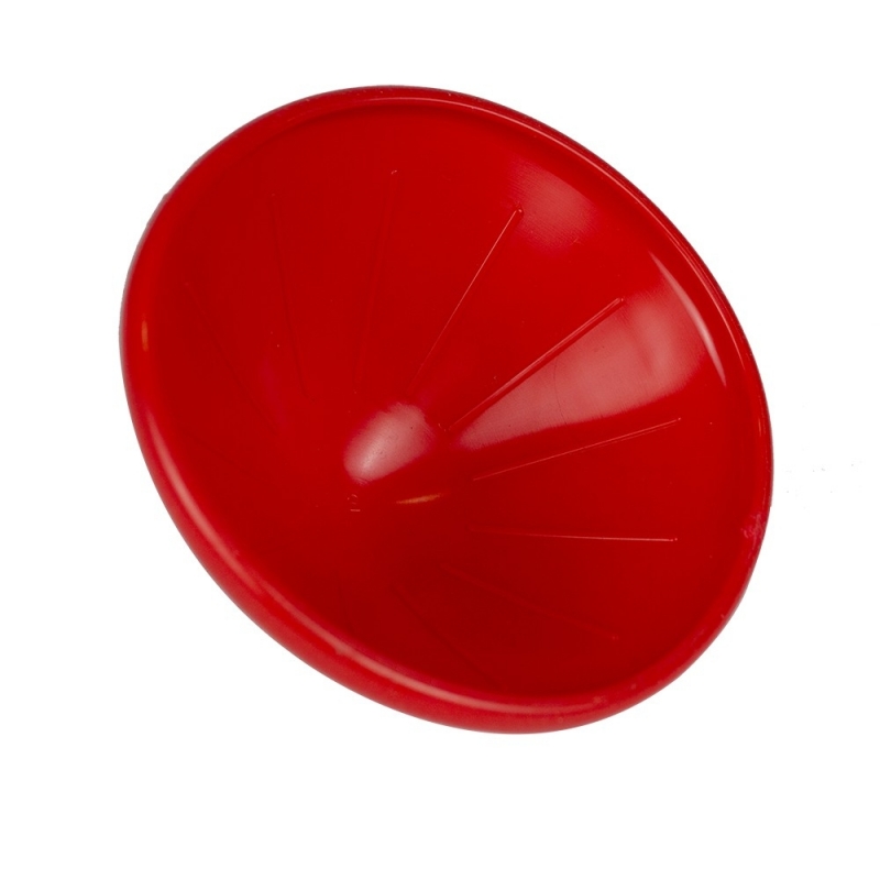 Apribarattolo antiscivolo rosso, a forma di cono. È stato progettato per aiutare ad aprire vasi e vasetti di qualsiasi tipo.