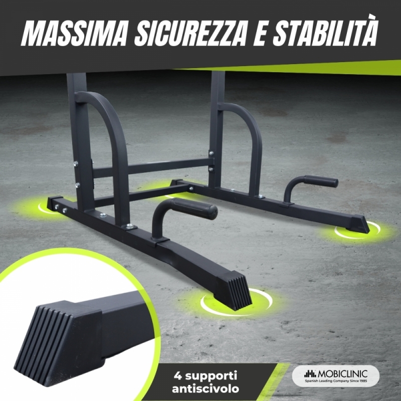RESISTENTE E SICURO: La sua struttura in acciaio resistente e il suo design accurato rendono MultiFit un dispositivo totalmente stabile e sicuro durante l'uso grazie ai suoi punti di appoggio.