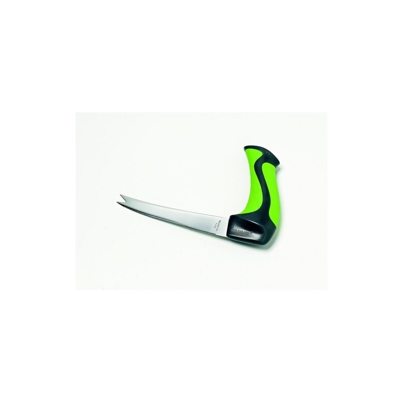 Questo coltello a forchetta ha un'impugnatura ergonomica a forma di L, direttamente ispirata ai coltelli da macellaio, che limita lo sforzo di taglio o di utilizzo. L'impugnatura ergonomica è realizzata in materiale antiscivolo in modo da non scivolare durante la preparazione.