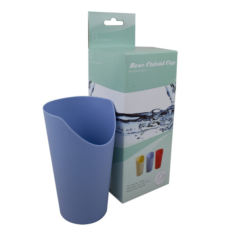 COMFORT: questo bicchiere in plastica ti permette di bere comodamente anche indossando un tutore per il collo o gli occhiali, richiede molto meno sforzo per l'utente.