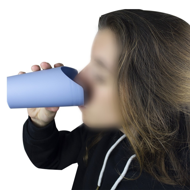 Con questo bicchiere si può bere senza dover forzare la zona cervicale o inclinare la testa.
