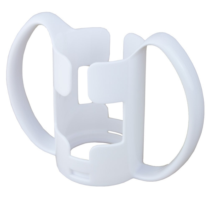 Questa impugnatura antiscivolo bianco, con due manici, serve a supportare bicchieri, tazze, bottigliette o qualsiasi altro piccolo contenitore per liquidi. Le sue due grandi maniglie sono perfette per tenerlo nella posizione corretta per bere, senza che scivoli dalle mani.