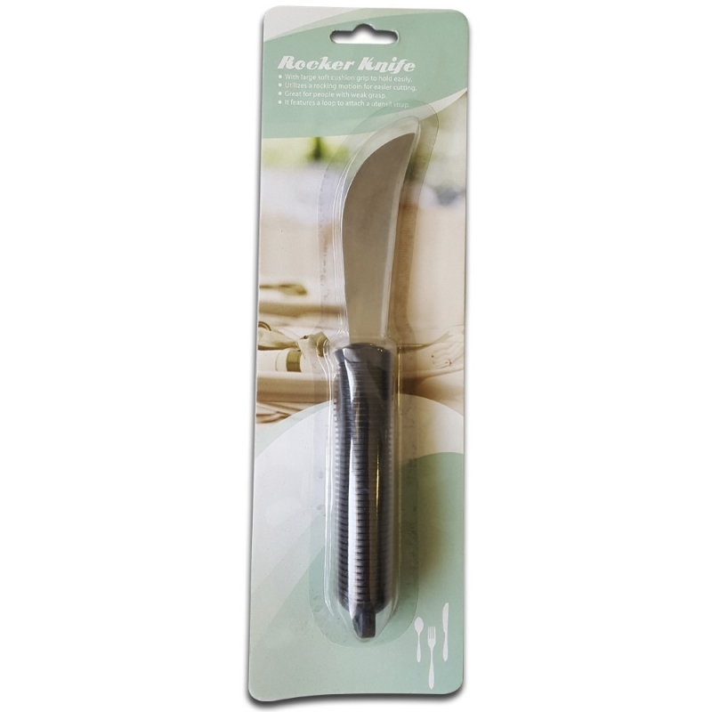 Il coltello arrotondato, pieghevole bilateralmente, è progettato per le persone con problemi di motricità fine, che soffrono di tremori o semplicemente per persone anziane che hanno perso autonomia e sicurezza, anche nelle attività più semplici, quali mangiare.