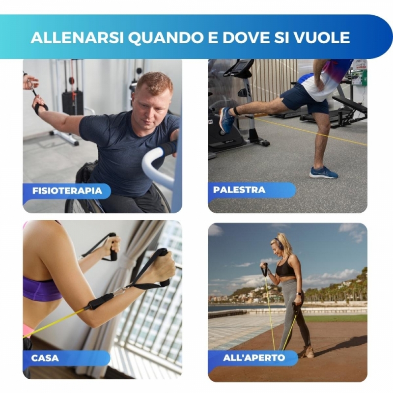 TRASPORTABILE : questi elastici fitness sono molto facili da trasportare, perché includendo la propria borsa puoi riporre tutti gli accessori per spostarli dove vuoi allenarti.