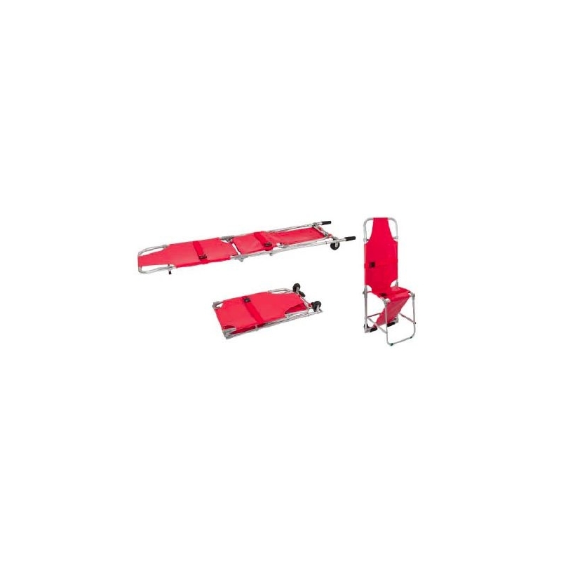 Barella per sedia molto leggera di dimensioni e peso ridotti. Può essere convertito in una poltrona per il trasferimento del paziente. Dispone di 2 ruote funzionali e due maniglie in alluminio. Due cinghie assicurano che il processo di trasporto sia sicuro.