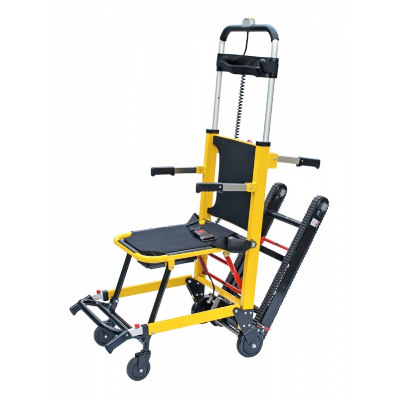 Sedia di evacuazione per scale realizzata in lega di alluminio ad alta resistenza. Due cinture per garantire la sicurezza dei pazienti durante il trasporto. Operabile da una sola persona. Quattro ruote per una facile movimentazione